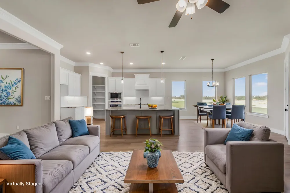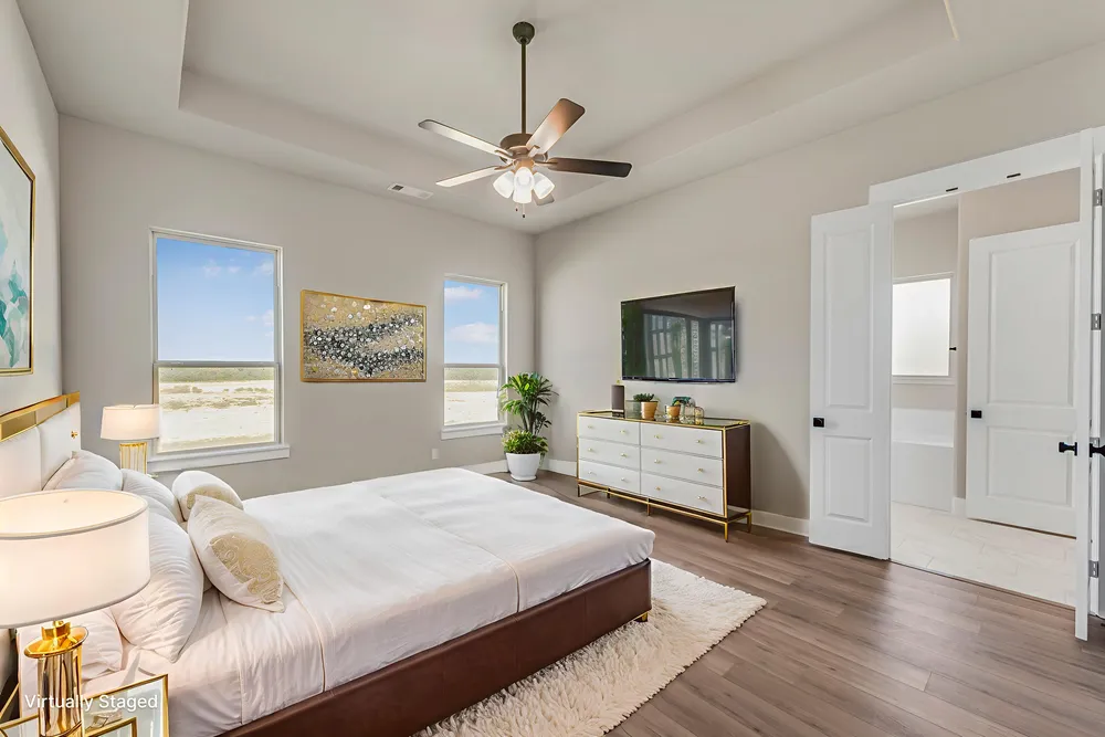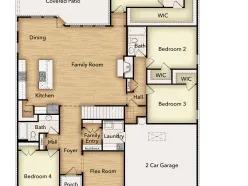 HERS SCORE: 55-The Aster floor plan is all about versatility with three elevations to choose from in order to create the ideal home exterior that suits your personal style. As you enter into the first floor of the home, the foyer leads you past a bedroom and bathroom on one side and a flex room on the other before opening up into the kitchen, dining room and family room. This open-concept home gives you plenty of reasons to host dinner parties or holiday events for your friends and family with a spacious dining room, oversized island within the kitchen and a charming fireplace to gather around at the end of the night. The owner’s suite is situated just off of the family room and overlooks the pristine backyard scene. With the owner’s bathroom featuring a standing bathtub, separate walk-in shower, a double vanity and an incredible walk-in closet—it’s as if you have your own private spa in the comfort of your own home. Moving upstairs, the room opens up into an ideal loft area—giving you the option of creating a second living room for your home. With an additional bedroom and bathroom located on the second floor as well, you’ll never run out of space in this 3,130 square foot home.