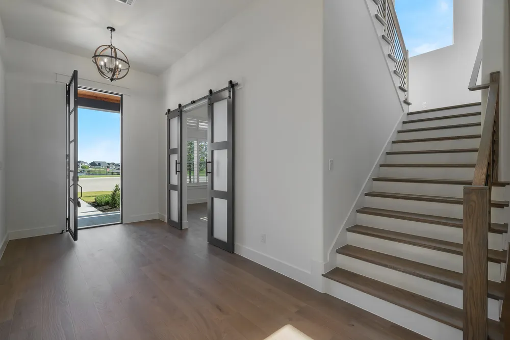This stunning 5-bedroom home offers everything that you can imagine. Huge open great room, open to a chef's kitchen, complete with separate prep-kitchen - all this overlooking the water. The private master retreat features vaulted, beamed ceilings, spa like bath and large walk-in closet. First floor also features a secondary bedroom with ensuite bath, large owners study/office, and a flex room that can be used as family den or whatever best suites your family needs. Second floor features huge game room with wet bar and a wall of windows that open to a large balcony - the perfect place to sit and watch the sunsets. Three additional secondary bedrooms with ensuite baths and a mechanical room for easy access complete the second floor. This home has large, wooded yard and easy lake access and private dock and custom swimming pool! Ready now for quick move in.