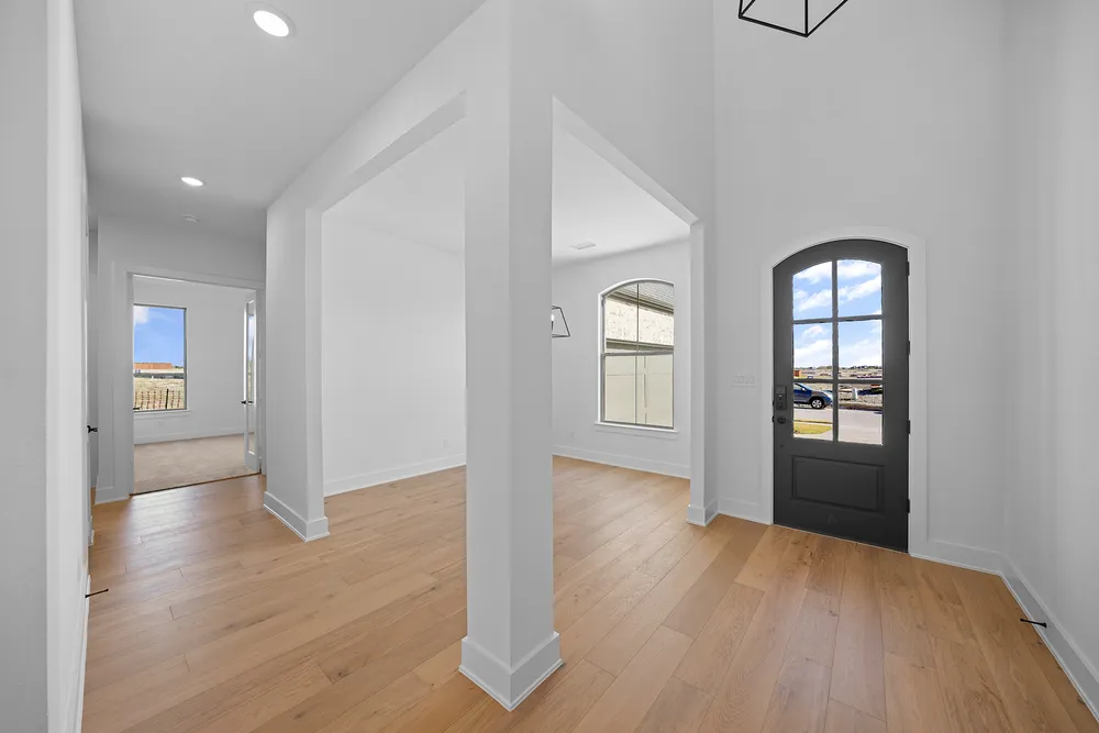 Beautifully designed home features a 3-car garage, 4 bedrooms, 3.5 baths, formal living and a media down that can also function as a study or flex space. Elegant light wood flooring and a custom wood staircase set a sophisticated tone throughout the main living areas.The two-story family has soaring ceilings, fireplace and a wall of windows that offer abundant natural light. The oversized covered patio stretches the full length of the family room, perfect for entertaining! The gourmet kitchen has custom white cabinetry, light quartz tops and a striking white oak island that adds a striking contrast.The primary suite offers a large spa-like bath with a freestanding tub, frameless glass shower and dual walk-in closetsone with bonus storage discreetly tucked under the stairs. A private secondary bedroom with en-suite access is on the first floor.Located in a vibrant community with a low tax rate and low HOA, this home offers the perfect combination of luxury, comfort, and long-term value.