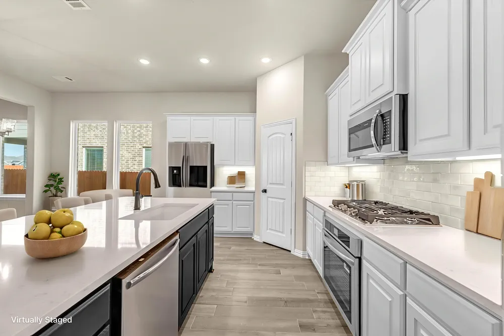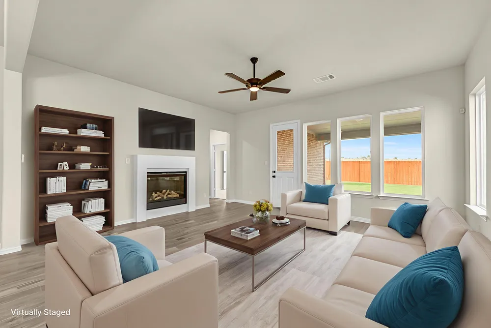 At Riverside Homebuilders, we pride ourselves in providing unique homes with floor plans that are as individual as our customers. This 3-bedroom, 2-bathroom home has a galley feel with an open floor plan. Walking into the grand foyer you’ll find yourself right at the entrance of the kitchen being welcomed by scents of freshly-baked cookies or a mouthwatering meal being prepared. The flex room in the front of the home can be easily utilized as another bedroom if needed or a den for reading and relaxing. Through the kitchen, you’ll find the cabinets open to the dining and living rooms at the heart of the home. A corner pantry gives you plenty of storage for snacks, canned goods, small appliances, and planning for a rainy day. To the right of the dining room lies the 2-bedroom wing. Whether for kids or guests, these rooms offer plenty of space with the convenience of their own full bathroom. Or, if you’re a new family preparing for your first little one, the secondary bedroom is close enough to the owner’s bedroom to feel safe having your baby sleep in their crib. The owner’s suite is nicely situated in the back corner with its own hallway to create the feel of your own private getaway. Enter the L-shaped bathroom through magnificent double doors. This floor plan offers one of our largest walk-in closets; we’ve maximized the space to offer enough room to change into that perfect outfit. Never track mud into your home again because the San Gabriel II has the laund...