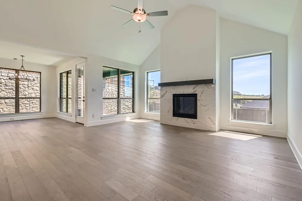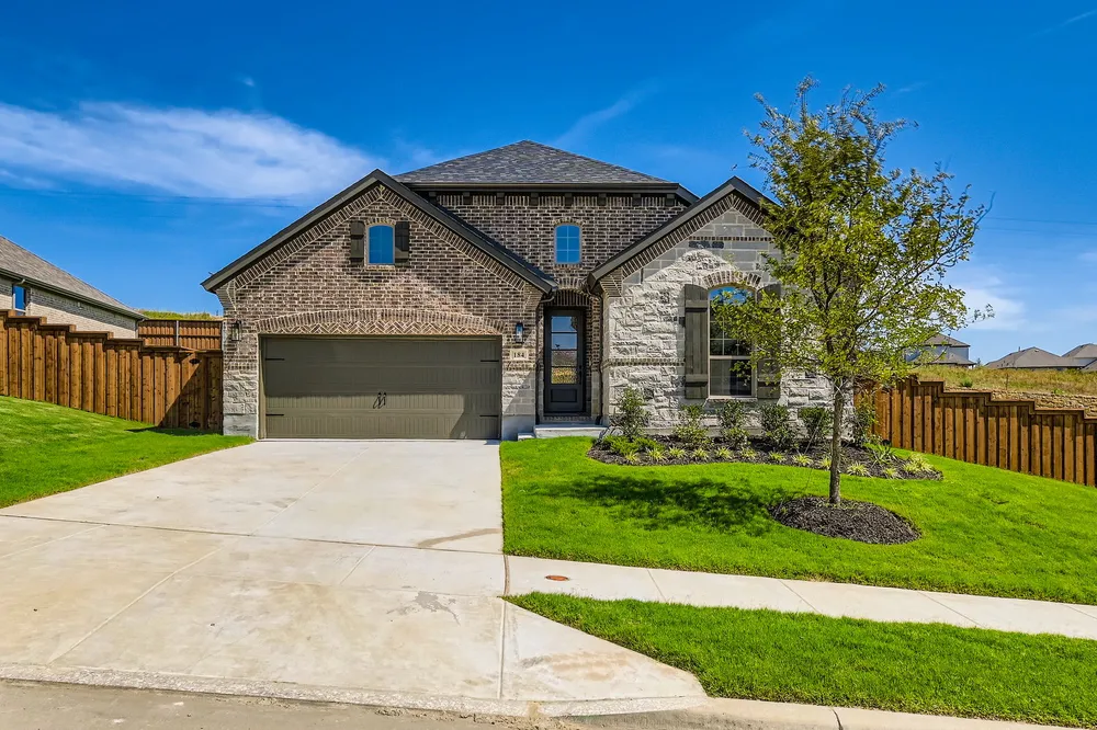 This is our top selling model plan with an upgraded brick and stone exterior . Walk inside and discover gorgeous hardwood floors throughout. In the heart of the home, you will find a spacious kitchen equipped with quartz countertops, Upgrade built in appliances, a large walk-in pantry, designer cabinetry, an abundance of counterspace and cabinets and a furniture style island that overlooks the dining area and family room with a cozy fireplace. With open style concept, entertaining will be a breeze. The main suite features a large bedroom, double door entry to the bath, with a soaker tub, separate glass enclosed shower, quartz countertops and a must-see walk-in closet. Your guests will enjoy the private bedroom with a full bathroom. The study has French glass doors, making for a quiet space for those work at home days. The two-car garage has insulated doors and openers. The covered outdoor living space, 8 foot doors, upgraded carpet and tile, make this a must see! Don't miss this amazing opportunity! Reunion Neighborhood is part of the award winning NISD school district with bus transportation. Easy freeway access to Fort Worth and DFW airport. Start making memories in your new American Legend Homes!!!