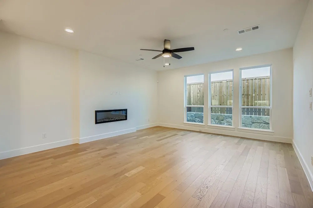 Discover the ease and elegance of townhome living in this beautiful townhome, built by renowned builder American Legend Homes, located in the highly sought-after Castle Hills master-planned community in Lewisville, TX. This beautifully designed townhome boasts 3 bedrooms, 3 full baths, powder bath and a 2-car garage, merging the comforts of single-family living with the low maintenance lifestyle of a townhome. Step inside to a bright family room with floor to ceiling windows that exudes modern sophistication. The heart of the home features wood floors downstairs and on the staircase, a large kitchen equipped with top-of-the-line appliances, ample quartz counter space and custom cabinetry ideal for both everyday living and entertaining. Upstairs, a versatile loft area provides additional living space, perfect for a home office or play area. Our townhome offers an enclosed backyard and covered patio that is perfect for socializing and grilling with friends or just relaxing outside.