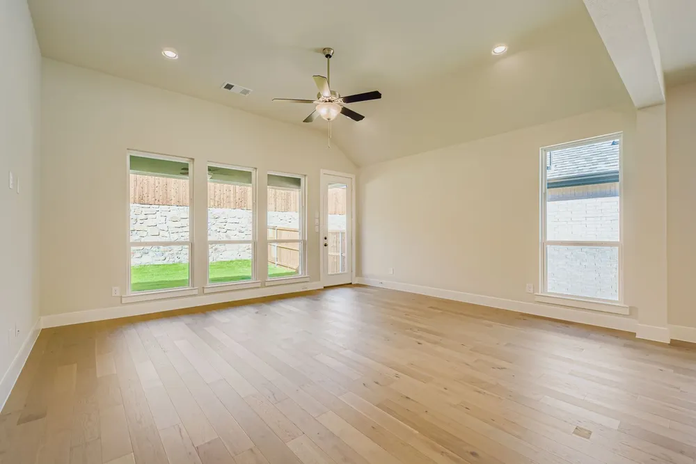 Youll fall in love with coming home to this stunning single-story design, offering both style and functionality. Featuring four spacious bedrooms, three full bathrooms, a dedicated study and a two-car garage, this home is designed to meet all your needs. The open-concept layout ensures seamless flow from the gourmet kitchen through the casual dining area and into the inviting family room, all leading to a spaciously covered outdoor living space thats perfect for entertaining or relaxing. Conveniently situated across from the kitchen, an oversized laundry room provides ample space, including room for an additional refrigerator. Nearby, two well-appointed secondary bedrooms share a full bathroom, offering comfort and convenience. Tucked away at the rear of the home for added privacy, the main suite is a true retreat, boasting soaring ceilings, a luxurious corner soaking tub, and dual walk-in closets. Thoughtfully designed with modern living in mind, this home truly checks every box.