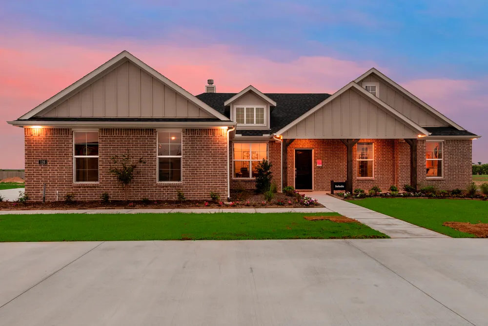 We are excited to introduce a brand new floor plan called the Salado! The entry is open to a bright flex Room on the right. The private owner's suite is separate from bedrooms 2 through 4. The owner's suite is complete by including a garden tub, separate shower, private commode, walk in closet, and dual, separate vanities. Adjacent to the owner's suite is the large living room with a fireplace option and open to the spacious island kitchen.