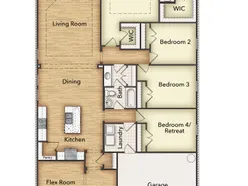 The Havasu III provides a versatile twist on the open concept. A clearly defined foyer and flex room gives definition to this entryway. The kitchen and dining room are one unified area giving you enough space for a large table where the entire family can gather together for a meal. An oversized living room presents the freedom for customization without compromise. Go for a large sectional to spread out on or several individual pieces to create a unique design. With three secondary bedrooms, the possibilities to personalize are endless. The smallest room is right around the corner from the owner’s suite, making it the ideal nursery or toddler’s bedroom. In the center of the home lies the third bedroom and a jack-and-jill bathroom with easy access to both hallways off the dining and living space. Toward the front of the home, the fourth bedroom is a great retreat for your guests to feel they have their own space when they come to visit. The laundry room is right off the kitchen and has an entrance to the 2-car garage, allowing it to double as a mudroom. This will prevent any muddy shoes from tracking dirt throughout your home. You can also enjoy beautiful Texas days on the patio right off the living room. Perfect your barbequing or spend time with your kids in the backyard. The Havasu III is a great option for growing families who need privacy but still come together at the end of the day for quality time.