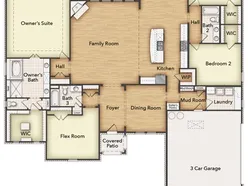 Discover an exceptional lifestyle in the Mockingbird—a masterpiece of modern living by our team at Riverside Homebuilders. This sprawling single-story sanctuary spans 3,104 square feet and offers 4 bedrooms and 3 bathrooms, perfectly curated for a life of luxury and comfort. As you enter through the charming covered porch, the foyer beckons you inside, setting the stage for the grandeur that lies within.To the left, a versatile flex room stands ready to evolve into your personalized haven, whether it be a home office, gym or creative space. To the right, an elegant dining room awaits, ready to host cherished moments with loved ones. Continue through to the heart of the home, where the main living area unfolds—a vast family room with a cozy fireplace, an inviting nook and a chef-inspired kitchen boasting an elongated island, ideal for culinary adventures and entertaining. On the left side of the home, discover the secluded owner's suite, offering unparalleled privacy and tranquility. Enjoy the luxury of a spacious walk-in closet and a serene bathroom, creating an oasis of relaxation. On the opposite side, two traditional bedrooms await, each complete with its own walk-in closet, accompanied by a shared bathroom—perfect for siblings or guests. Functionality reigns supreme with the laundry and mudroom conveniently situated just off the garage entrance. Finally, step outside to the expansive covered patio, seamlessly blending indoor and outdoor living and promising endl...