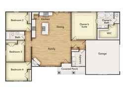 The four-bedroom Caddo floor plan is designed with entertaining in mind. It starts with the curb appeal where homeowners can choose between seven distinctive elevations that show your personality the minute your guests arrive. Each includes several large windows and breathtaking stonework. From there, visitors pass through the covered porch to see a stunning open gathering space that combines the family room, dining area and gourmet kitchen. An oversized island serves as the centerpiece of the space allowing you to command the room while you cook, whether it’s for close family and friends or a holiday crowd. A door to the backyard extends your entertaining and adds year-round flexibility facing the cozy fireplace at the opposite end of the main living space. The Caddo also provides much-needed privacy with a owner's suite in the back right corner behind the garage accessible through a small back hallway. This spacious suite includes double vanities in the bathrooms, a separate water closet and a large walk-in closet to give you ample storage for blotches and accessories. And, the laundry room is located directly across the hall from the owner's suite making for easy chores or a quick drop on the way in through the garage. Three more bedrooms are located on the opposite side of the home connected by a secluded hallway and sharing a full bathroom. Each of the three has a large closet with double doors.