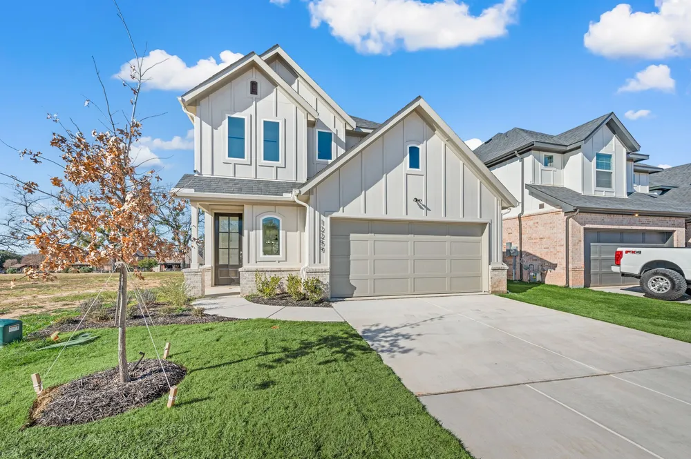 The Ruby floor plan, part of the exclusive Jewel Collection by OCH, is thoughtfully designed for both comfort and style within the gated community of The Resort at Eagle Mountain Lake.The first floor highlights a spacious open-concept living, dining, and kitchen area, perfect for entertaining or relaxing with family. The primary suite offers a private retreat with dual sinks, a walk-in shower, and a generously sized walk-in closet. The living space seamlessly flows to a covered patio and backyard with golf course views, creating the perfect indoor-outdoor connection.Upstairs, youll find three secondary bedrooms and a full bath, providing ample space for family or guests.