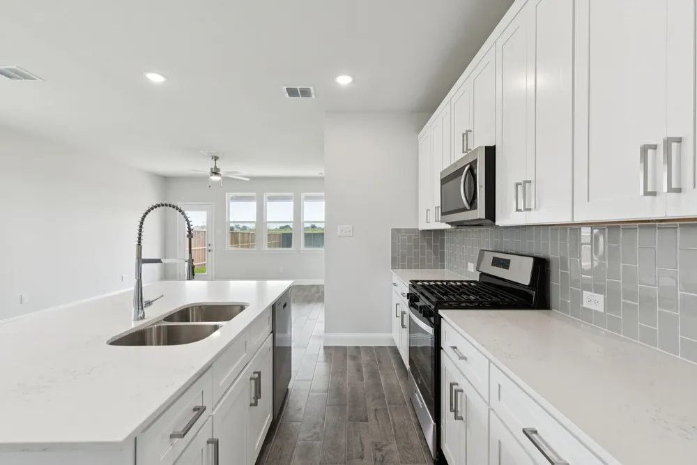 Robin Plan - 2.99 Percent FIXED RATE for a 30 Year Mortgage (3.75 Percent APR) on Select Homes for a Limited Time Only - Lagoon life is coming to Forney ISD with Bellagio, a vibrant new community offering top-rated schools, lush parks, and resort-style amenities centered around a stunning lagoon. Nestled in the charming town of Forney, Bellagio blends small-town warmth with a rich local history, creating a unique lifestyle destination. With entertainment, dining, and relaxation for all ages, it brings together the best of comfort, connection, and everyday escape. Megatel Homes Robin plan is a 2-story, 2,197 square foot home featuring 4 spacious bedrooms, 2.5 bathrooms, a game room, and a 2-car garage. This home blends style and function with an open-concept layout that connects the kitchen and living areas, making it easy to enjoy daily life or host guests. The main level primary suite offers comfort and privacy, complete with a roomy walk-in closet and a private ensuite bath. Situated on a 40 ft lot, this home is available with elevation B, showcasing a distinct and stylish exterior design.