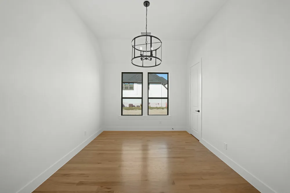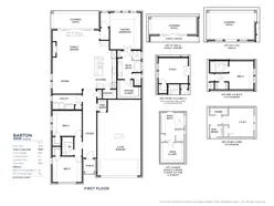 One-Story Barton plan features an open kitchen/living layout, 3 bedrooms/3 full baths plus a study. The 11 ceilings throughout the home add to the spacious feel. Thoughtful upgrades include nail down wood flooring stained in a light tone through the main areas of the home. Contemporary kitchen features white cabinets to the ceiling, a large, charcoal color island, and quartz countertops. Main bath features a huge shower! Surround sound pre-wire in family room + two camera pre-wire locations. Boutique, hilly community, Low HOA dues!