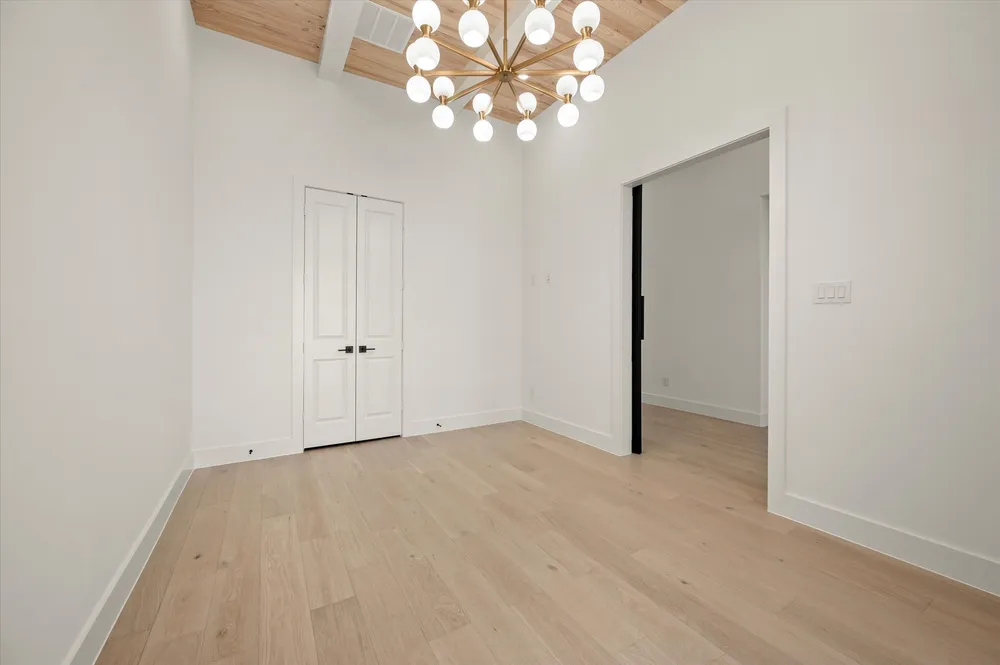 This stunning Crosby custom plan is ready for a family. This luxury home features great open floor plan. Beamed 2 story ceiling in family room. Chef's kitchen with upgraded appliance package. 3 bedrooms on first floor! There is so much to see in this stunning home. Upon entering the modern glass and iron front door, you will notice the nail down white oak floors that carry throughout all the living areas. The study with beamed wooden ceiling treatments and barn doors is directly off the entry. Continuing thru the foyer, you will enter the massive great room, complete with 2 story beamed ceilings, beautiful modern chandelier, large cast stone fireplace surrounded by specialty wall treatment. The wall of windows and large glass slider overlooking the back yard ensure that your home will be filled with natural light. The large chefs' kitchen is open to the great room, allowing for great flow when entertaining guest or just hanging out with the family. The kitchen features a massive island with quartz countertops, upgraded appliances and custom cabinetry. The owner's retreat is located at the back of the home for utmost privacy. The retreat features wood floors, vaulted ceiling, spa like bath with large walk-in shower, free standing bath, custom cabinets and large walk-in custom closet. And, did I just say CUSTOM CLOSET? Take a look at all the lighted cabinetry, custom shoe storage, glass front storage and pull-down hanging rods in this very custom closet system!This home has too many features to list them all. This is a must-see home!