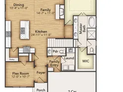 Our new 2-story floor plan will have you wondering how you lived so long without all this space. The 4-bedroom, 2.5-bathroom home offers designated space for living, winding down, working and, of course, sleeping. The perfect place for a family with pre-teens and teenagers eager to have their own retreat, the Navasota design invites a plethora of options. Entering the foyer from the front porch, you’ll be greeted by a flex room on your left. This space could function as a home office for the aspiring entrepreneur or a study space for kids working on homework. Continuing on, an L-shape kitchen is situated in the corner of an open floor plan. Extended countertops, walk-in pantry, and large island create a great layout for holiday dinners. The seamlessly connected dining and family room reflect the desirable open concept, which means you’ll never be left out of the conversation. At the end of a long day of gathering and celebration, escape to your haven in the owner’s suite, tucked strategically in the back corner. This room has ample amounts of natural lighting and double doors into the bathroom for added luxury. Entering this bathroom is like walking into a spa with a private water closet, tub, and extended dual vanity. At the end of this long galley lies a dream closet for any shopaholic and shoe lover. Sharing won’t be a problem with plenty of room for his-and-hers clothing. Venturing to the second floor, you will enter into an open game room. This could be the c...