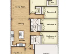 The Havasu III provides a versatile twist on the open concept. A clearly defined foyer and flex room gives definition to this entryway. The kitchen and dining room are one unified area giving you enough space for a large table where the entire family can gather together for a meal. An oversized living room presents the freedom for customization without compromise. Go for a large sectional to spread out on or several individual pieces to create a unique design. With three secondary bedrooms, the possibilities to personalize are endless. The smallest room is right around the corner from the owner’s suite, making it the ideal nursery or toddler’s bedroom. In the center of the home lies the third bedroom and a jack-and-jill bathroom with easy access to both hallways off the dining and living space. Toward the front of the home, the fourth bedroom is a great retreat for your guests to feel they have their own space when they come to visit. The laundry room is right off the kitchen and has an entrance to the 2-car garage, allowing it to double as a mudroom. This will prevent any muddy shoes from tracking dirt throughout your home. You can also enjoy beautiful Texas days on the patio right off the living room. Perfect your barbequing or spend time with your kids in the backyard. The Havasu III is a great option for growing families who need privacy but still come together at the end of the day for quality time.