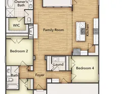 The Lavon floor plan provides all the space needed for a growing family. Welcomed by a pillared front porch, the long foyer opens into a grand family room complete with a fireplace. Gathering in this home is easy with the seamless transition from room to room. The kitchen is positioned against the back wall as the stage so you can look out and observe all things going on. With three equally-sized spare bedrooms, you’ll have space for your family and any visitors. A walk-in mudroom off the garage allows for more storage of shoes, bags, and all your day-to-day items. The Lavon home is perfect for a busy and active family needing space to come together as well as everyone’s own private space. The owner’s suite is a perfect getaway, tucked in the back corner past the family room. Entering this space, you’ll have a splendid view into the backyard. All the natural light will make this oasis feel even more tranquil. The bedroom leads into the owner's bath with a double-sink vanity, stand-up shower, and tub perfect for unwinding after a long day. There’s no shortage of storage in this luxurious ranch-style home with closets in every room, extended countertops in the kitchen, corner pantry, and coat closet. Bring your family home to the Lavon floor plan and enjoy all the comfort of room to spread out and relax, teamed with the highest quality product.