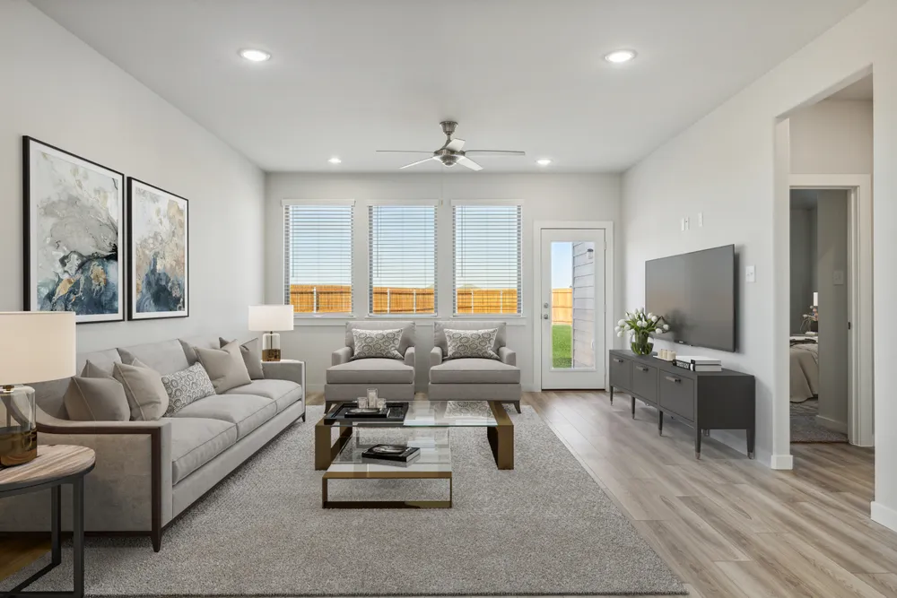 The flexible Willow is everything you want in a home. An oversized study allows you to make quick work of office duties. Or convert one of the upstairs bedrooms into your office and turn the downstairs study into the ultimate bar. Set up an island with bar stools, stock up on liquor and invite guests to sip martinis. Drinks in hand, they can meander over to the beautiful family room, backlit by a wall of windows. Entertain younger guests upstairs in the game room. After the party, sip a glass of wine in the primary suite seating area before turning in.