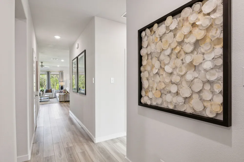 The Emmy II boasts an expansive main living area with a gourmet island kitchen, beautiful living room and snug dining area. The addition of a covered patio amplifies your entertaining space, so be sure to add a bistro table and chairs for morning cappuccino al fresco with neighbors. Three secondary bedrooms offer private space but can flex into the ultimate hobby room, yoga spot or home office!