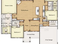 Discover an exceptional lifestyle in the Mockingbird—a masterpiece of modern living by our team at Riverside Homebuilders. This sprawling single-story sanctuary spans 3,104 square feet and offers 4 bedrooms and 3 bathrooms, perfectly curated for a life of luxury and comfort. As you enter through the charming covered porch, the foyer beckons you inside, setting the stage for the grandeur that lies within.To the left, a versatile flex room stands ready to evolve into your personalized haven, whether it be a home office, gym or creative space. To the right, an elegant dining room awaits, ready to host cherished moments with loved ones. Continue through to the heart of the home, where the main living area unfolds—a vast family room with a cozy fireplace, an inviting nook and a chef-inspired kitchen boasting an elongated island, ideal for culinary adventures and entertaining. On the left side of the home, discover the secluded owner's suite, offering unparalleled privacy and tranquility. Enjoy the luxury of a spacious walk-in closet and a serene bathroom, creating an oasis of relaxation. On the opposite side, two traditional bedrooms await, each complete with its own walk-in closet, accompanied by a shared bathroom—perfect for siblings or guests. Functionality reigns supreme with the laundry and mudroom conveniently situated just off the garage entrance. Finally, step outside to the expansive covered patio, seamlessly blending indoor and outdoor living and promising endl...