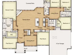 Discover the allure of the Foxglove, an epitome of sophistication and comfort crafted by Riverside Homebuilders. This luxurious one-story abode spans 3,497 square feet, offering 4 bedrooms and 3 bathrooms, meticulously designed for modern living. With a 3-car garage and a thoughtful layout, convenience and elegance seamlessly intertwine to create an unparalleled living experience. As you step through the front porch, you're greeted by an open and airy foyer, setting the tone for the home's inviting atmosphere. To the right, a luminous dining room awaits, perfect for hosting memorable gatherings with friends and family. Adjacent to the foyer, discover two versatile flex rooms, adaptable to your every need—whether it be a home gym, office or creative space. Continue through to the heart of the home, where the magic unfolds—a sprawling family room adorned with a cozy fireplace, nestled near a charming nook and a chef-inspired kitchen boasting ample counter space and storage areas. On the right side of the home, three traditional bedrooms each feature a walk-in closet and are accompanied by two bathrooms for utmost convenience. The laundry room further enhances functionality, making chores a breeze. For added entertainment, indulge in the media room, ensuring every member of the family has a space to fulfill their passions. On the opposite side, the owner's suite awaits, offering a sanctuary of luxury with top-quality features, a stunning owner's bath and an incredible wa...
