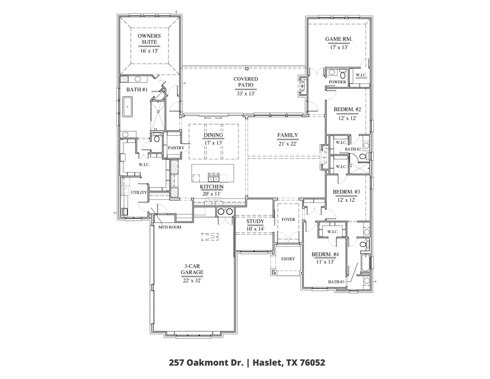This stunning 3,507 sq. ft. home at in Haslets NorthGlen community features 4 bedrooms, 3 baths, and a 3-car garage. Also included are an open kitchen with Jennair appliances & quartz countertops, a vaulted family room with hand-scraped white oak floors, and a covered patio with an outdoor fireplace perfect for entertaining.
