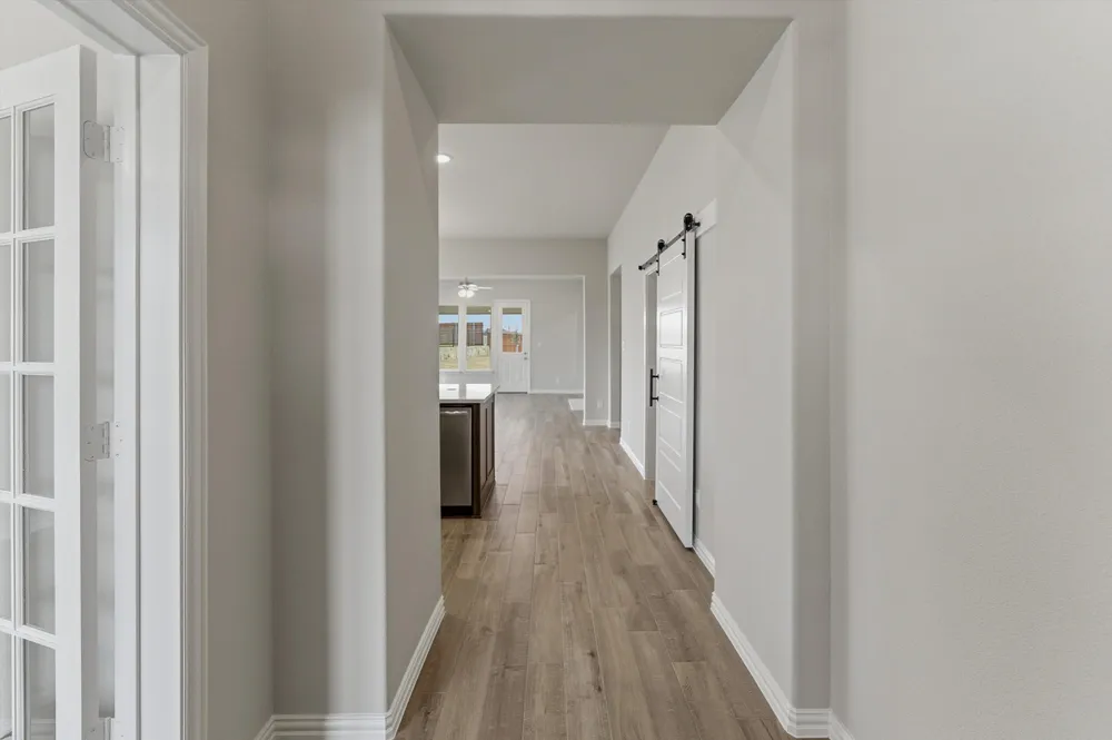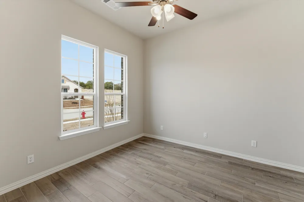 At Riverside Homebuilders, we pride ourselves in providing unique homes with floor plans that are as individual as our customers. This 3-bedroom, 2-bathroom home has a galley feel with an open floor plan. Walking into the grand foyer you’ll find yourself right at the entrance of the kitchen being welcomed by scents of freshly-baked cookies or a mouthwatering meal being prepared. The flex room in the front of the home can be easily utilized as another bedroom if needed or a den for reading and relaxing. Through the kitchen, you’ll find the cabinets open to the dining and living rooms at the heart of the home. A corner pantry gives you plenty of storage for snacks, canned goods, small appliances, and planning for a rainy day. To the right of the dining room lies the 2-bedroom wing. Whether for kids or guests, these rooms offer plenty of space with the convenience of their own full bathroom. Or, if you’re a new family preparing for your first little one, the secondary bedroom is close enough to the owner’s bedroom to feel safe having your baby sleep in their crib. The owner’s suite is nicely situated in the back corner with its own hallway to create the feel of your own private getaway. Enter the L-shaped bathroom through magnificent double doors. This floor plan offers one of our largest walk-in closets; we’ve maximized the space to offer enough room to change into that perfect outfit. Never track mud into your home again because the San Gabriel II has the laund...