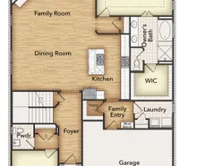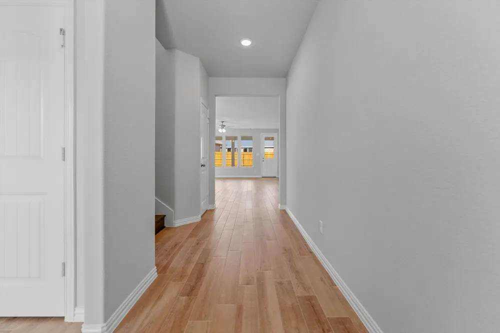 The four-bedroom Nueces floor plan is 2,858 square feet of functional living space. This two-story home was designed with every kind of homeowner in mind—it exemplifies the importance of togetherness by offering spaces for families to gather, as well as spacious bedrooms so every person has an area to call their own. Upon entering the home from the two-car garage, you’ll walk through the mudroom with a built-in storage bench and pass the walk-in pantry and separate laundry room. The gourmet kitchen includes an island with overhang for seating, extravagant storage options and lots of counter space. Past the kitchen is the open-concept dining and family room that can be laid out to meet the needs and style preferences of your family. Through a short hallway you’ll find the oversized owner suite with a double-sink bathroom, soaking tub, separate shower and walk-in closet. Finishing off the main floor is a powder room and a flex room toward the front of the house that can be used as a home office, virtual learning space or playroom. The second floor opens up to a multi-purpose loft that would make a perfect second family room. It also includes three bedrooms, each with their own walk-in closets, two full bathrooms and an additional storage closet. Outside spaces include a welcoming front porch and large covered patio adjoining the back of the house.