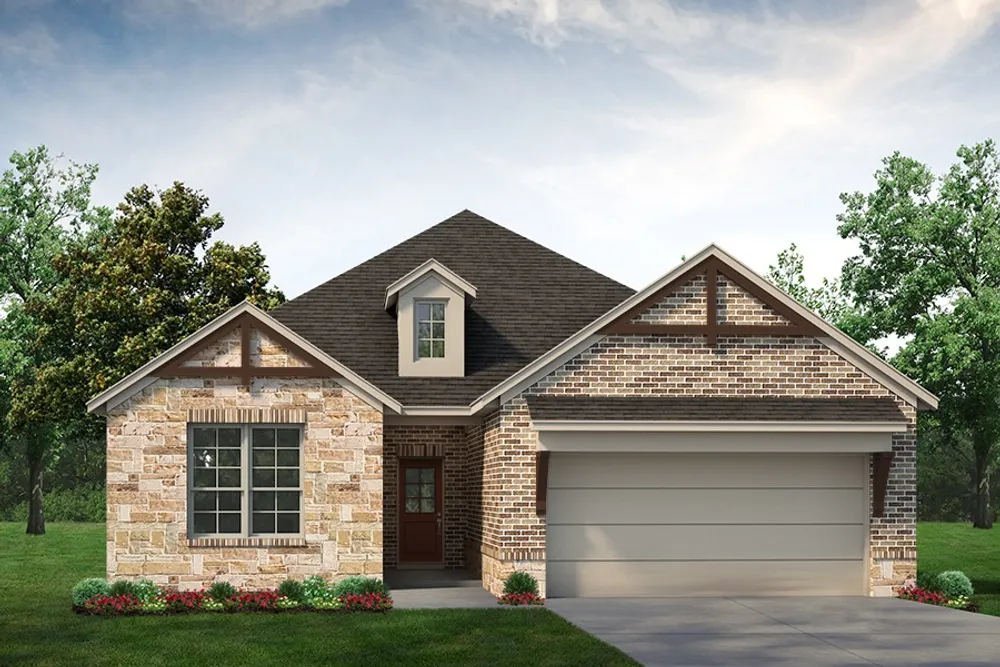 Experience the feeling of home in our Cascade II floor plan. Welcome family and friends into this 3-bedroom, 2-bath, ranch-style home with a spacious open floor plan. From cooking to dining to relaxing by the fire, this continuous design lends itself to entertaining for all occasions. As you walk through the foyer, to the left, the second and third bedrooms are perfectly situated for a private guest getaway. On the right, utilize the flex room for a home office, craft room or play area for young kids. This unique space offers the chance to customize your home to fit the needs of your family. Continuing through to the open kitchen, the extended countertops and island are the ideal workspace for anything from a simple family dinner to a culinary masterpiece. A walk-in pantry with two walls of storage means maximum space for all your snacks and ingredients. Situated in the back corner, the owner’s suite is the epitome of space and comfort. With a door right off the family room, this bedroom gives you a lot of natural light and easy access to the outdoor covered patio. A double-sink vanity means you’ll never have to share space again. Complete with a stand-up shower, tub, and walk-in closet, this space has all the amenities for ideal living.