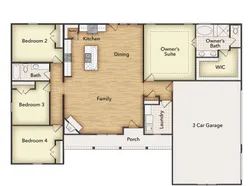 The four-bedroom Caddo floor plan is designed with entertaining in mind. It starts with the curb appeal where homeowners can choose between seven distinctive elevations that show your personality the minute your guests arrive. Each includes several large windows and breathtaking stonework. From there, visitors pass through the covered porch to see a stunning open gathering space that combines the family room, dining area and gourmet kitchen. An oversized island serves as the centerpiece of the space allowing you to command the room while you cook, whether it’s for close family and friends or a holiday crowd. A door to the backyard extends your entertaining and adds year-round flexibility facing the cozy fireplace at the opposite end of the main living space. The Caddo also provides much-needed privacy with a owner's suite in the back right corner behind the garage accessible through a small back hallway. This spacious suite includes double vanities in the bathrooms, a separate water closet and a large walk-in closet to give you ample storage for blotches and accessories. And, the laundry room is located directly across the hall from the owner's suite making for easy chores or a quick drop on the way in through the garage. Three more bedrooms are located on the opposite side of the home connected by a secluded hallway and sharing a full bathroom. Each of the three has a large closet with double doors.