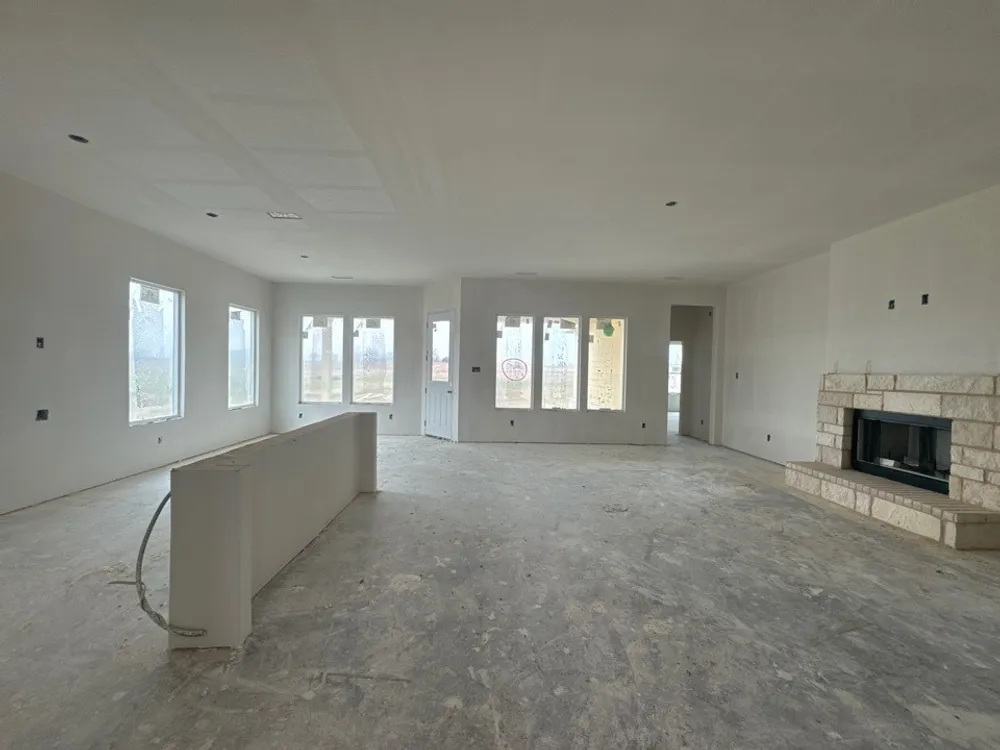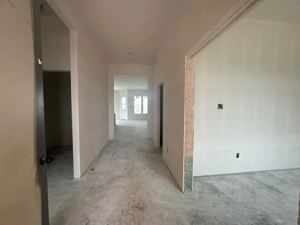 The Verbena floor plan features a modern, open-concept layout and the sought-after features today’s homeowners are searching for. With four bedrooms, three bathrooms, and a flex room, this plan boasts just over 2,400 square feet of functional living space. Upon entering the home off the front porch, you’re welcomed by an inviting foyer. Immediately to the left is a hallway with a bedroom, walk-in closet and full bathroom, as well as a linen closet. Across the foyer is a flex room, perfect for a home office, formal dining room or whatever need your family has for the space. Past the foyer is the family entry, with storage space and mud bench, which leads to the laundry room and two or three car attached garage. Through the entrance, the home opens up to a large family room with a stately fireplace. Adjacent to the family room is a gourmet kitchen, equipped with a walk-in pantry, ample counter space and an oversized island. Finishing off this open-concept living area is a dining space which overlooks the covered back patio. The remainder of this one-story floor plan is just off the living space. A hall leads to two bedrooms with walk-in closets, another linen closet and a shared full bathroom. The back corner of the home offers privacy for the owner’s suite, featuring a massive walk-in closet and bathroom with a dual-sink vanity, standalone soaking tub and glass-enclosed shower.