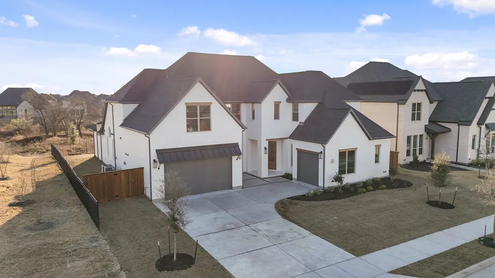 New Construction on an interior, corner greenbelt lot backing to trees in Prosper ISD. Dramatic 2 story entry with spiral staircase, windows to bring in the natural light with open railing from the game room above. Your gourmet kitchen boasts Calcutta Elysio countertops, KitchenAid appliances, apron front sink and extensive custom cabinetry to the ceiling. The freestanding tub is focal in the spa inspired master bath with separate vanities, huge walk-in closet, separate coffee bar area and private shower. The perfect upstairs is a plan favorite with a centralized game room and on suite bedroom and bathrooms in each corner of 2nd floor offering privacy from each room.