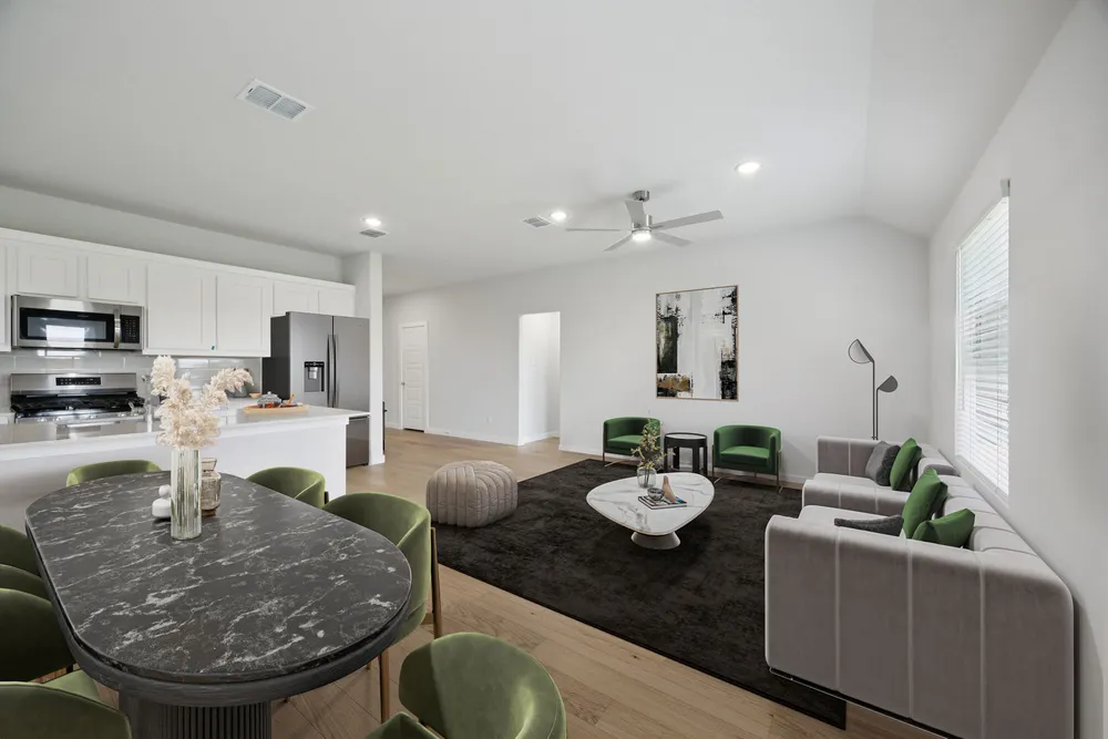 Discover the Hadley - a thoughtfully designed three bedroom, two bathroom home that offers comfort and efficiency. The open concept living and dining area creates a warm and inviting atmosphere, perfect for gatherings. With a spacious primary suite and two additional bedrooms, this plan is ideal for those seeking a balance of style and functionality in a cozy and well-designed layout.
