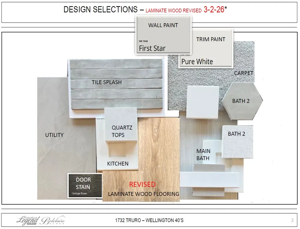 Welcome to this charming one-story home, thoughtfully designed for comfort and convenience. Featuring three spacious bedrooms and two well-appointed bathrooms, the home offers a perfect blend of style and functionality. The inviting dining area seamlessly flows into the modern kitchen, while the outdoor living space and front porch provide perfect spots for relaxation and entertainment. The back-entry, two-car garage adds extra convenience and curb appeal. Nestled in a vibrant community, residents enjoy access to top-notch amenities, including a walking track, parks, playgrounds and a pavilion with a grilling area-perfect for gatherings and outdoor fun. Plus, the home's prime location offers easy access to Dallas-Fort Worth Airport, shopping and dining. Families will also appreciate the proximity to highly rated Northwest ISD schools, making this home an ideal choice for modern living. This home will be ready for move in June, 2026. Contact our sales counselor at American Legend Homes in Wellington for more information about this elegant and affordable home.