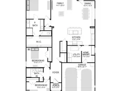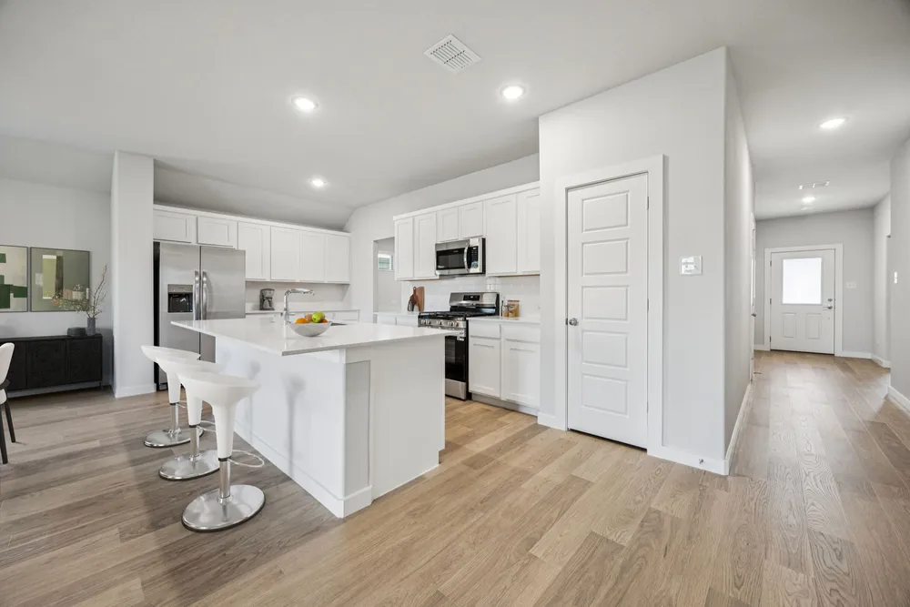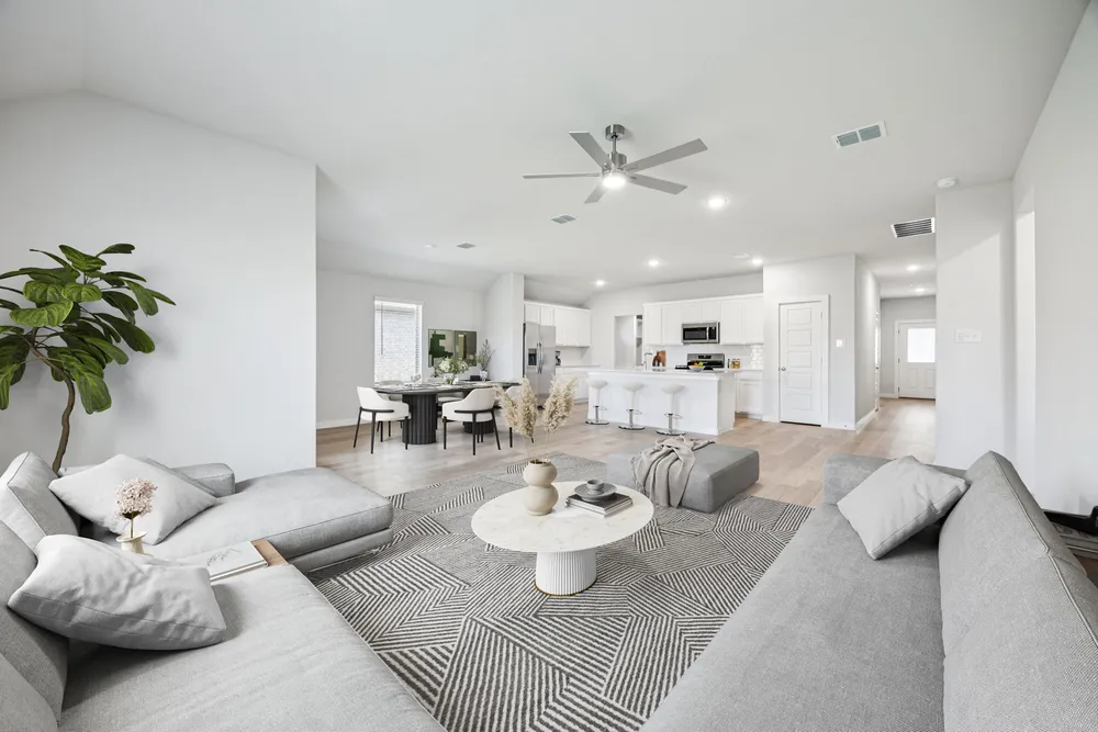 Meet the Harrison, a three bedroom, two bathroom home blending cozy living with modern touches. A spacious primary bedroom with a walk-in closet and an en-suite bath is complemented by two secondary bedrooms, perfect for guests. The large family room opens to a contemporary kitchen, ideal for both relaxed weekends and casual entertaining.