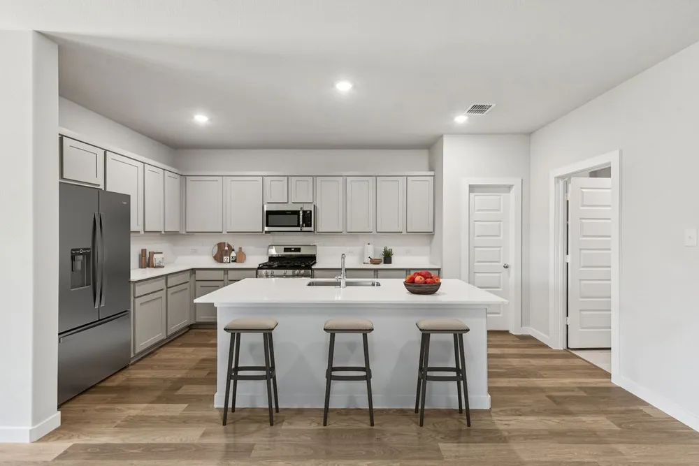 Perfect proportions and an abundance of well-placed features make the Oscar a blockbuster design you'll love coming home to. Say hello to the sun as it streams through oversized windows in your primary suite. Just around the corner is your home office, an inviting space that encourages creativity and offers an escape to the back patio or the ultra-modern kitchen when it's time for a break. Life is centered in the great room with a cozy family room, chic dining area and an ultra-modern kitchen. Three additional bedrooms located near the front of the house are private, quiet and serene.