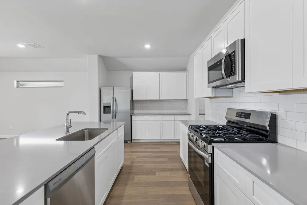 Meet the Harrison, a three bedroom, two bathroom home blending cozy living with modern touches. A spacious primary bedroom with a walk-in closet and an en-suite bath is complemented by two secondary bedrooms, perfect for guests. The large family room opens to a contemporary kitchen, ideal for both relaxed weekends and casual entertaining.