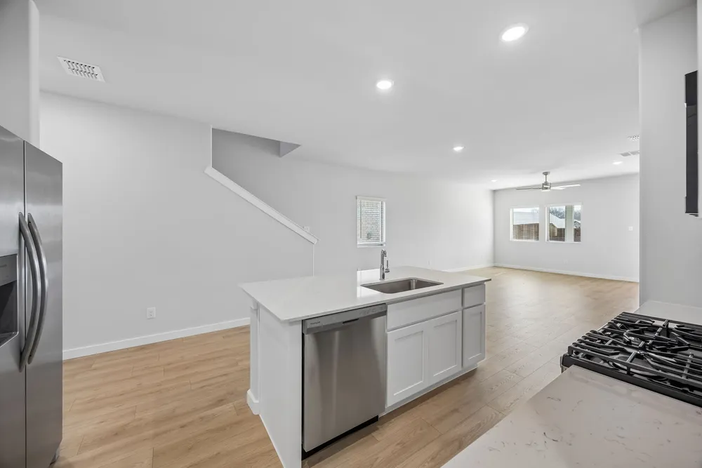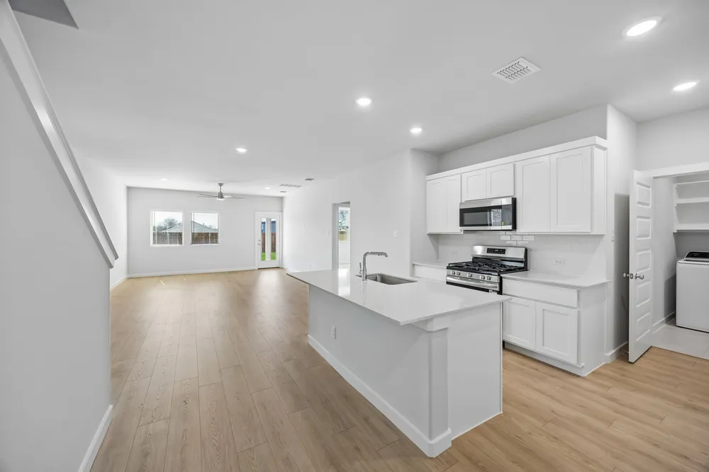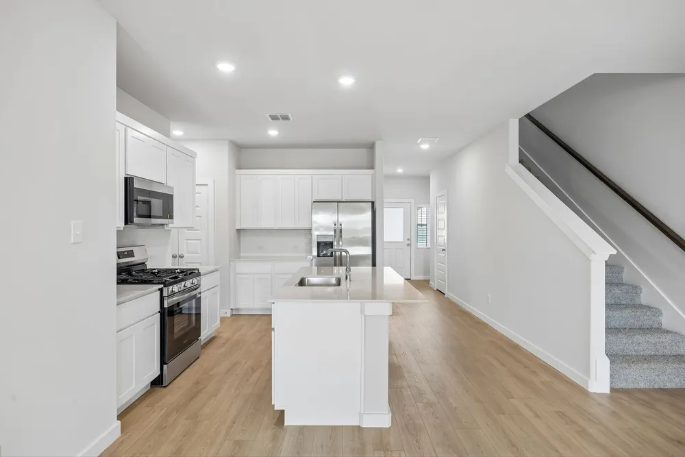 The Mesquite floor plan provides a practical and balanced layout, perfect for modern living. As you enter through the inviting foyer, the open kitchen offers ample space for casual meals or hosting guests. The connected dining and family rooms create a seamless flow, making it easy to unwind after a busy day or enjoy a cozy movie night. With bedrooms upstairs, including a thoughtfully designed primary suite with a walk-in closet and ensuite bath, this plan delivers comfort without excess. The upstairs loft adds a flexible space for hobbies or study, making the Mesquite an adaptable home for a variety of lifestyles.